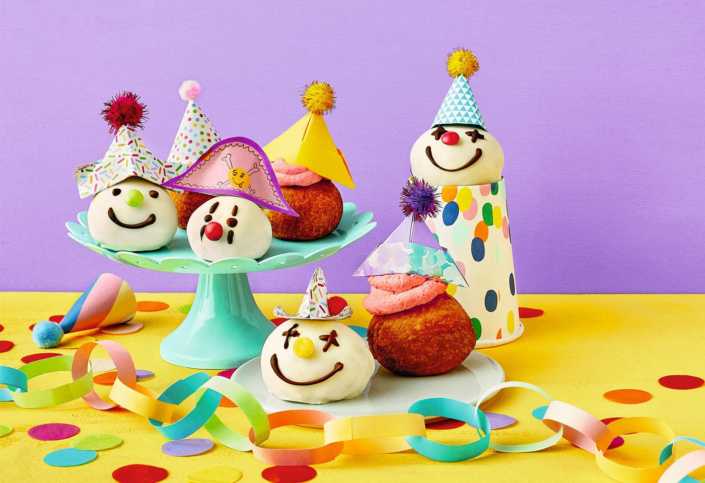 Mini-Faschingskrapfen mit Glasur und Erdbeercreme