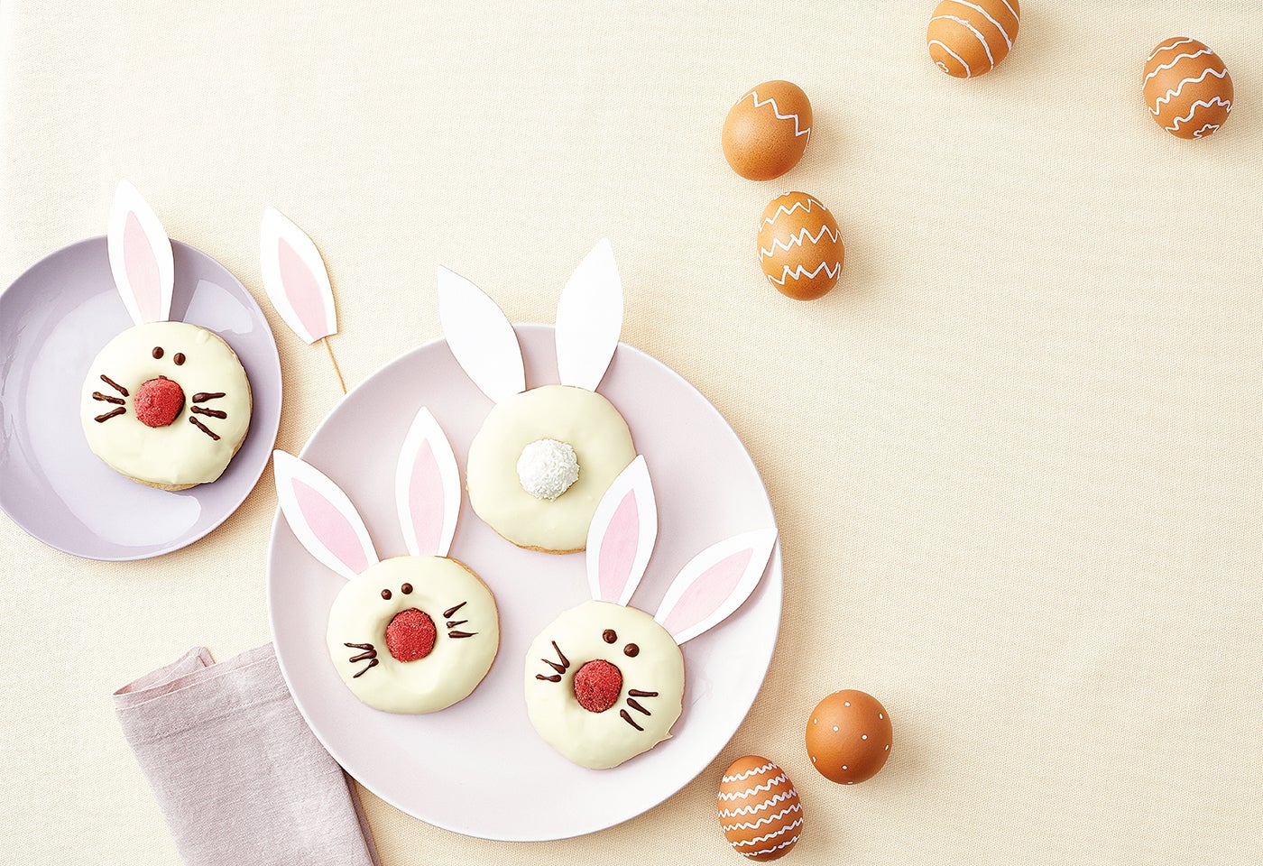 Osterhasen-Donuts mit Weiße-Schoko-Glasur