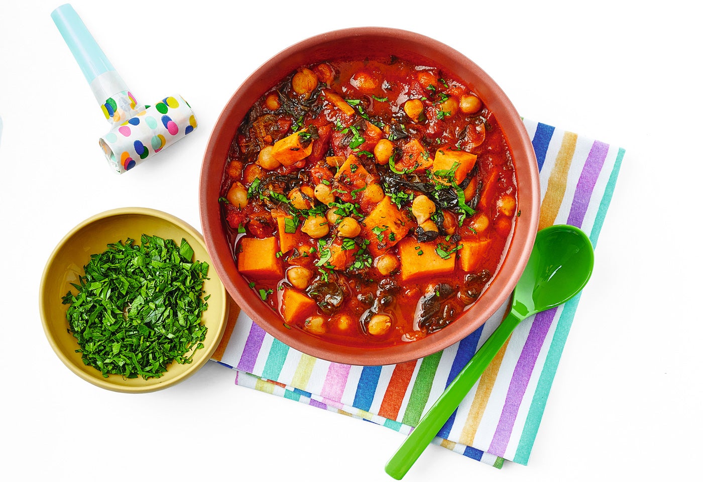 Kichererbsen-Süßkartoffel-Eintopf mit Spinat
