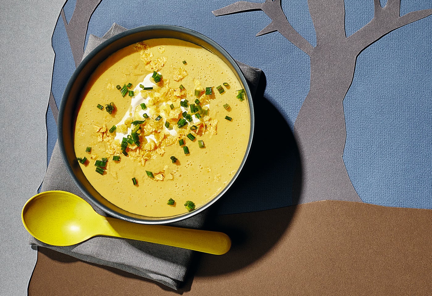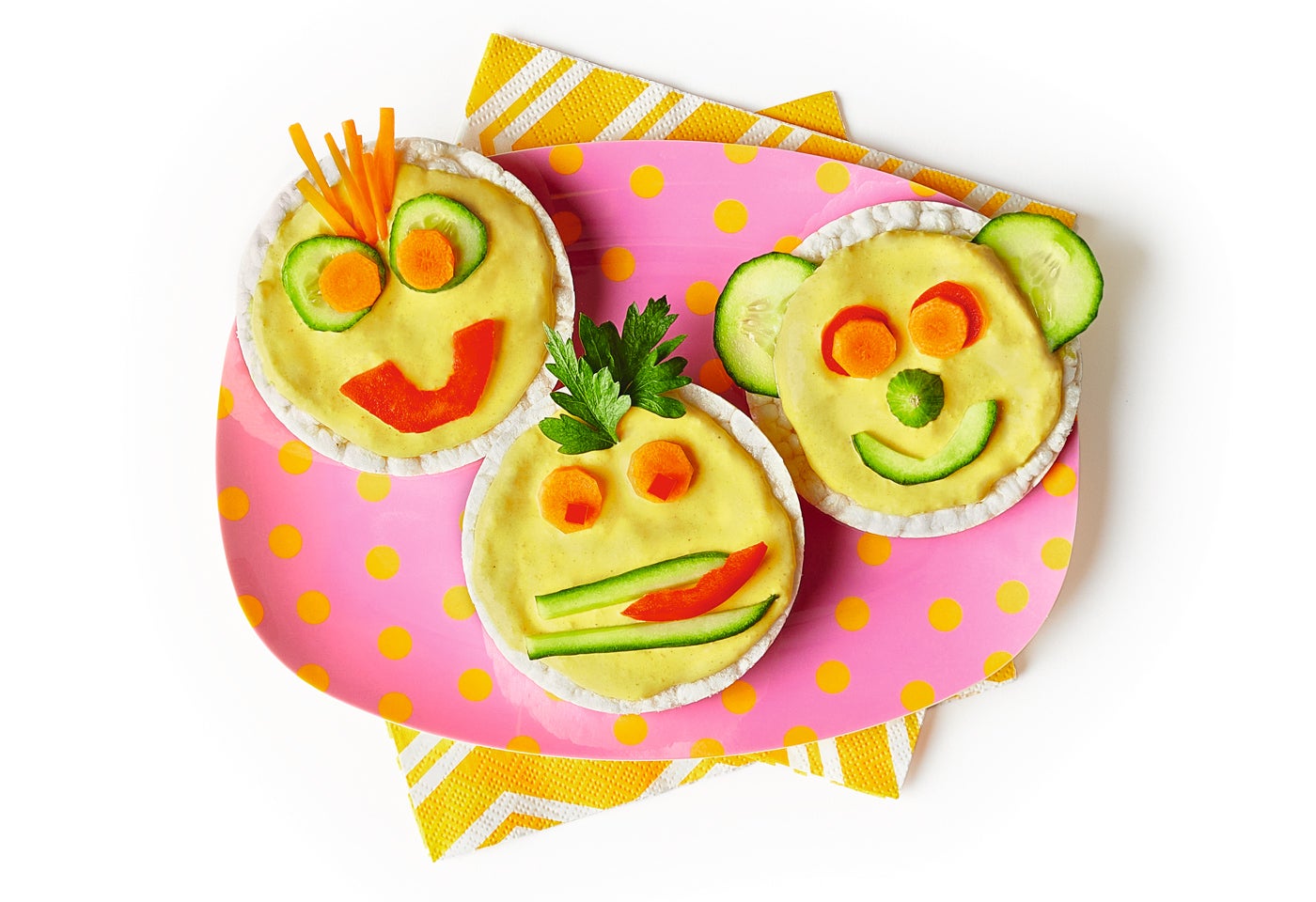Frischkäse-Curry-Aufstrich mit buntem Gemüsegesichtern