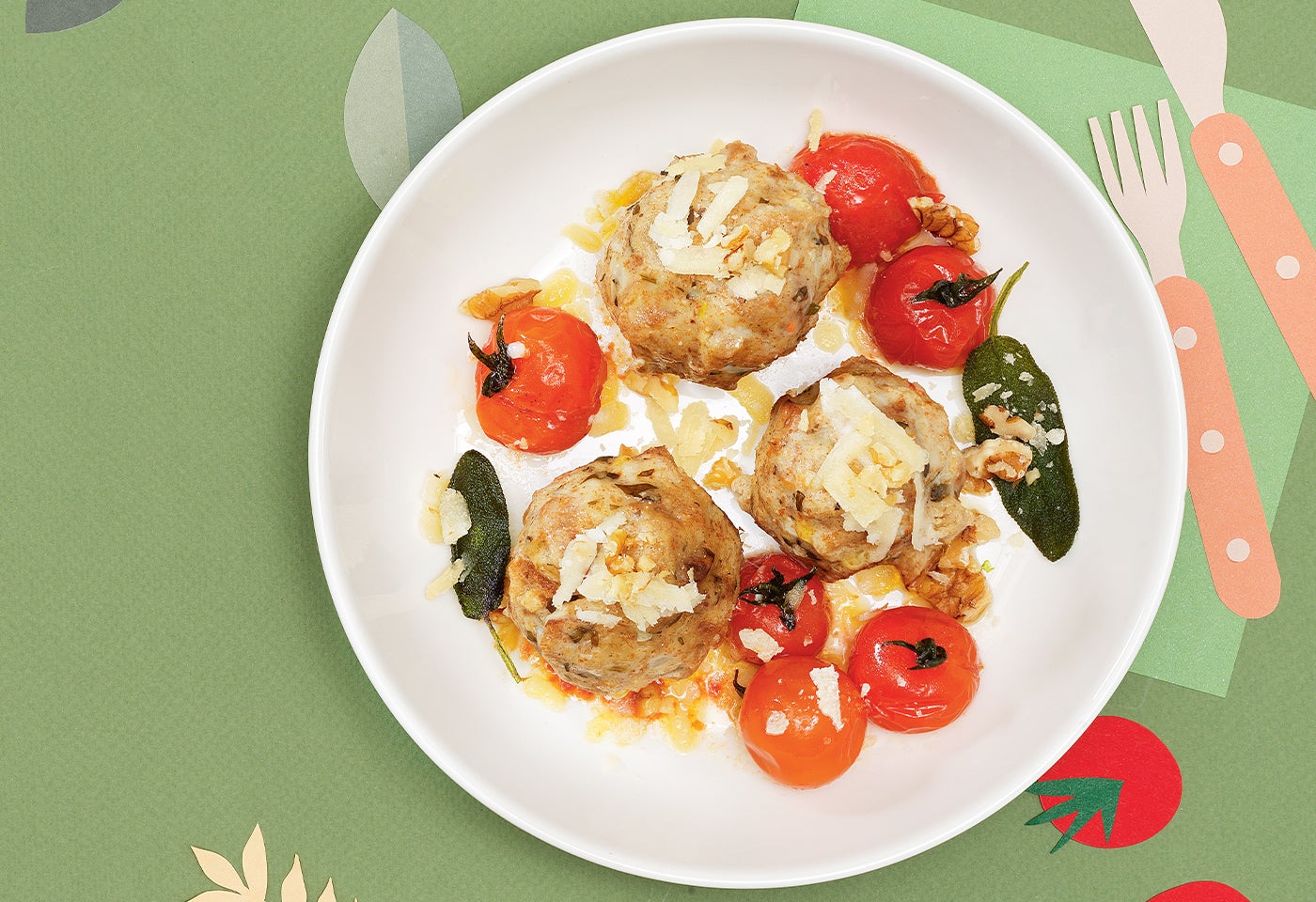 Vollkorn-Kräuterknödel mit gebratenen Tomaten
