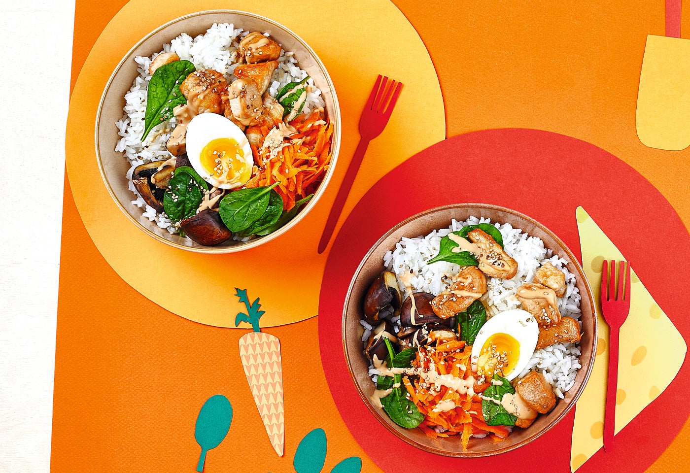 Bunte Reis-Bowl mit Erdnusssauce