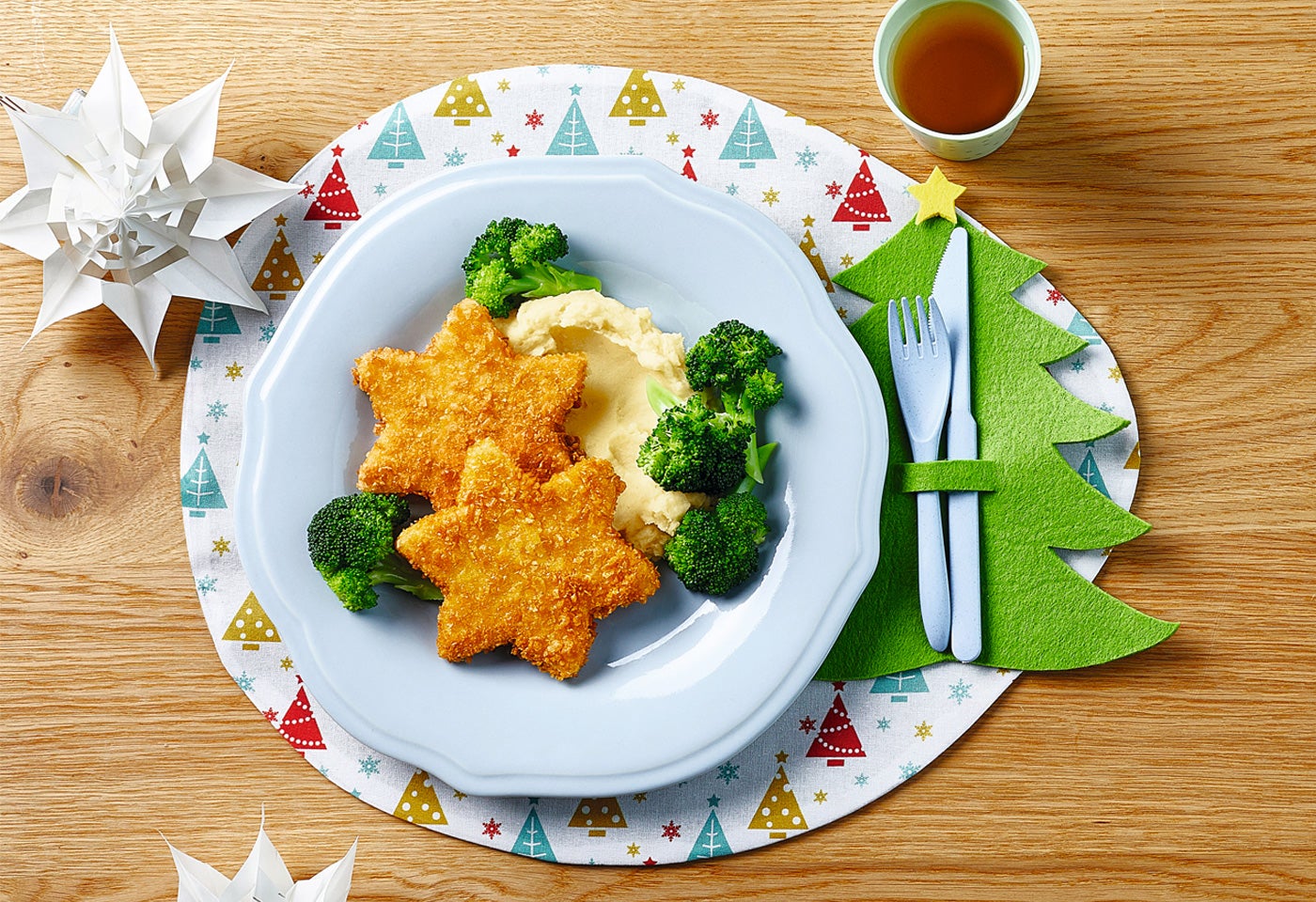 Panierte Bio-Selleriesterne mit Püree und Brokkoli