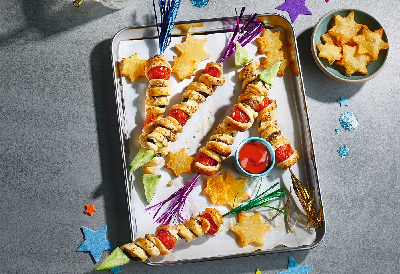 Silvesterspieße mit knusprigen Erdäpfelsternen