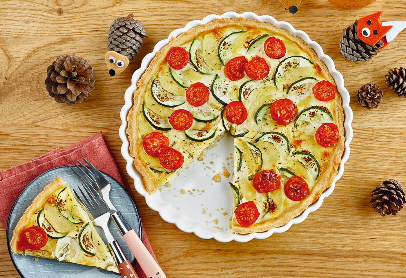 Bio-Zucchini-Erdäpfel-Tarte mit Snacktomaten