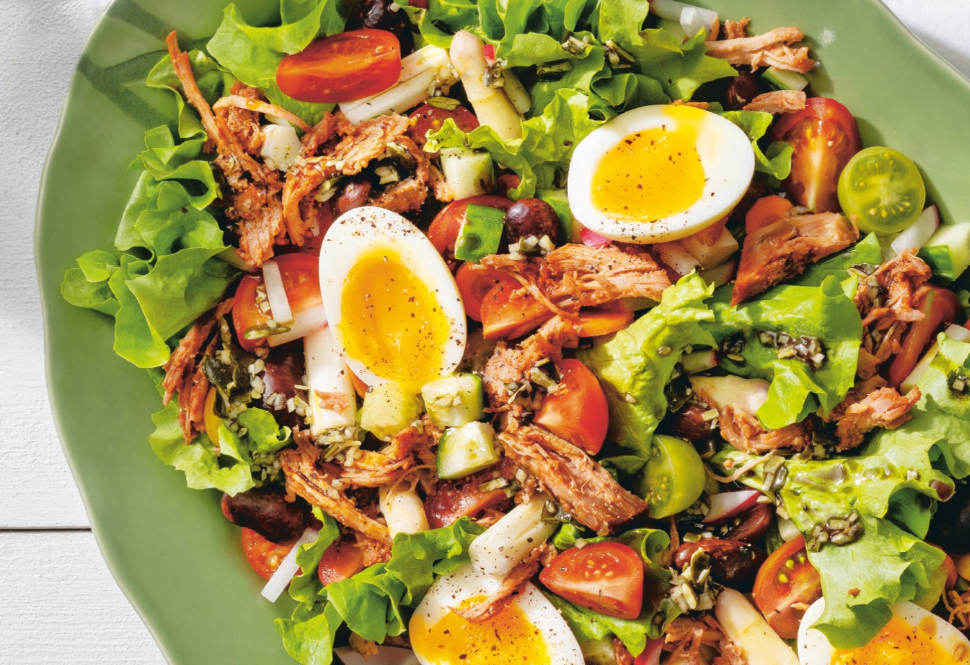 Bunter Salat auf steirische Art mit Pulled Pork und Ei