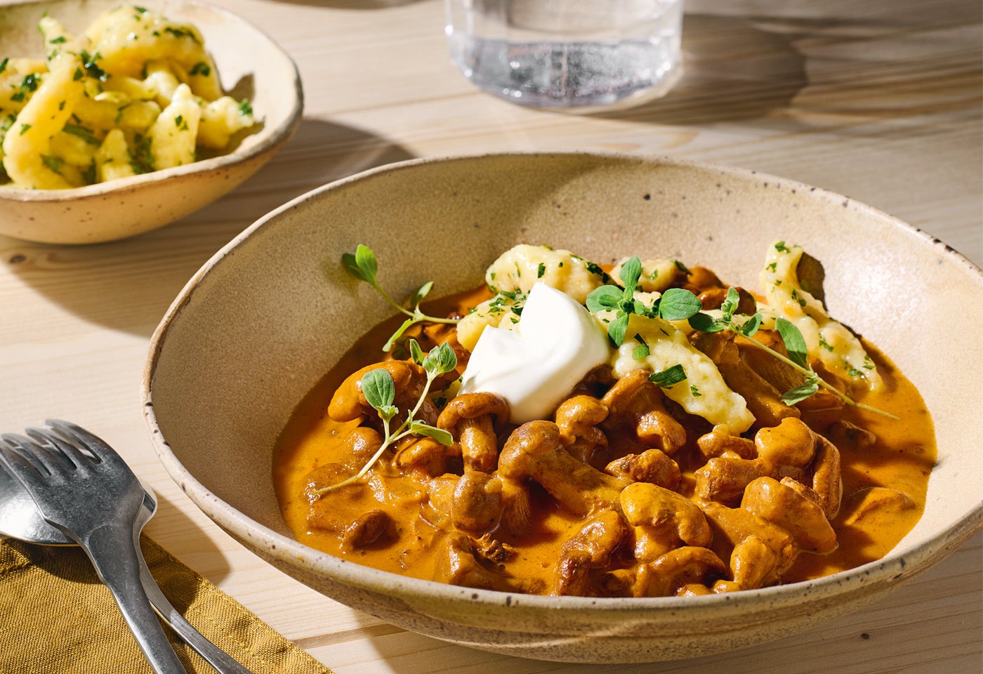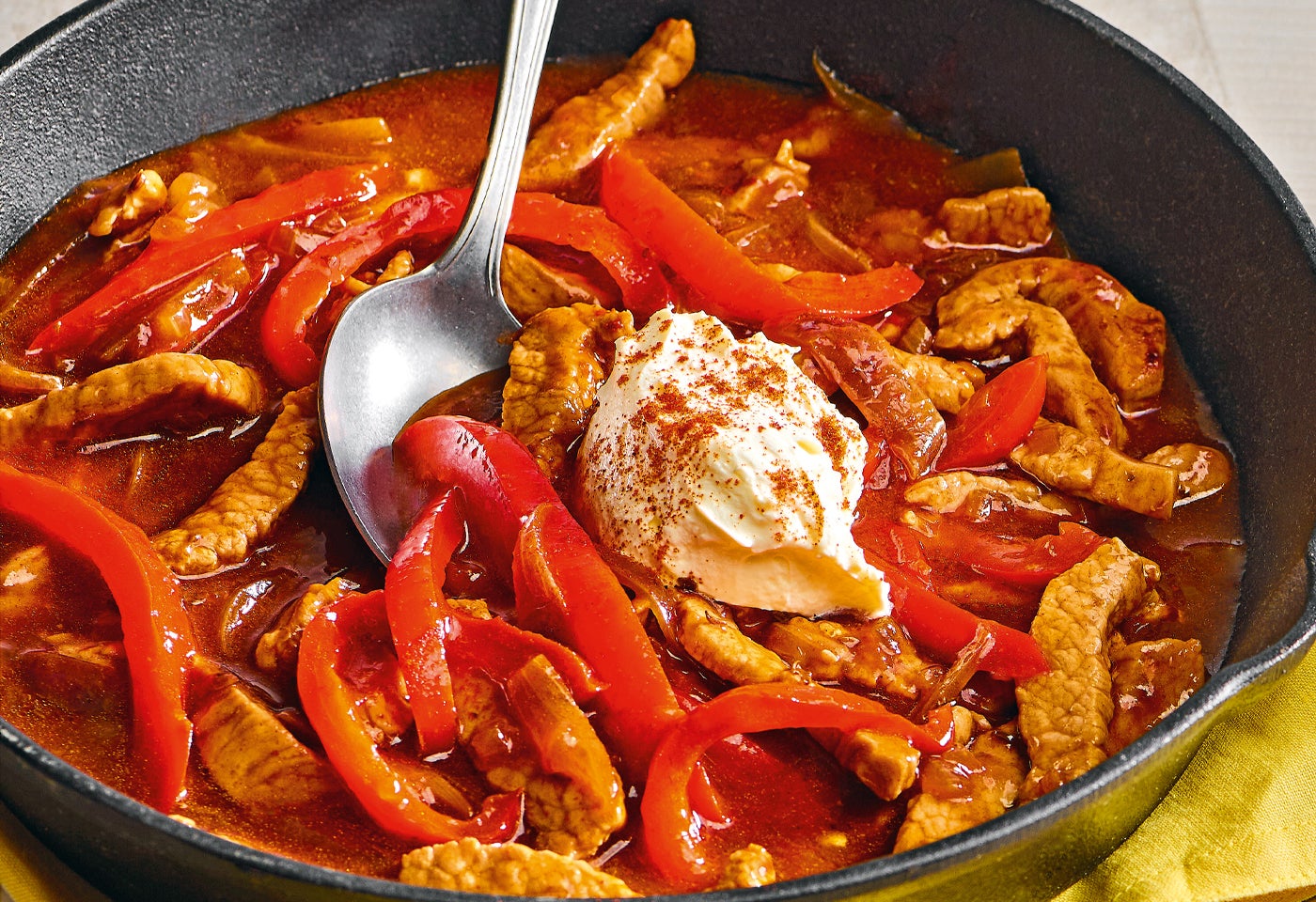 Paprika-Geschnetzeltes mit Schupfnudeln