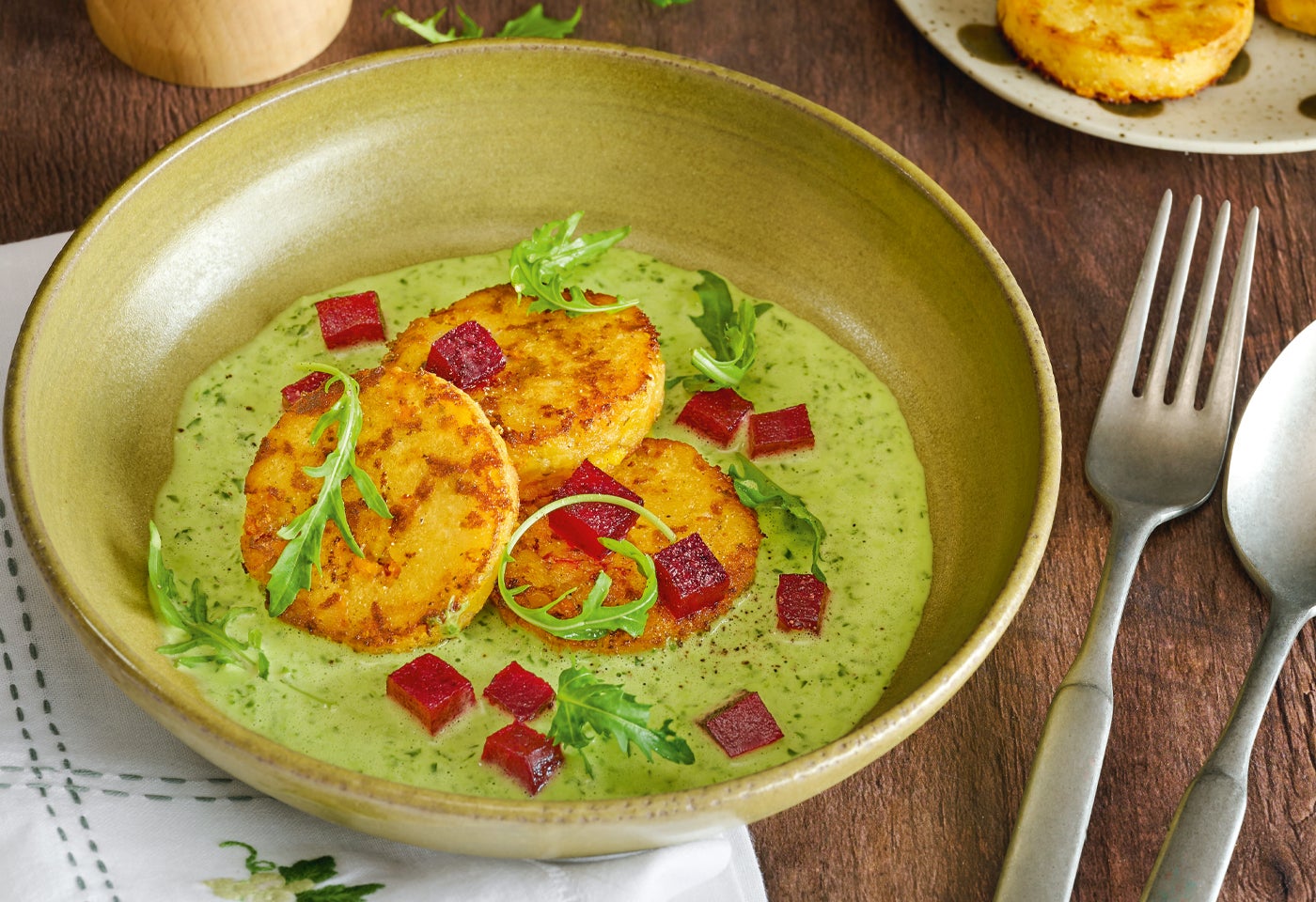 Kräuter-Erdäpfelkas mit Räuchersaibling