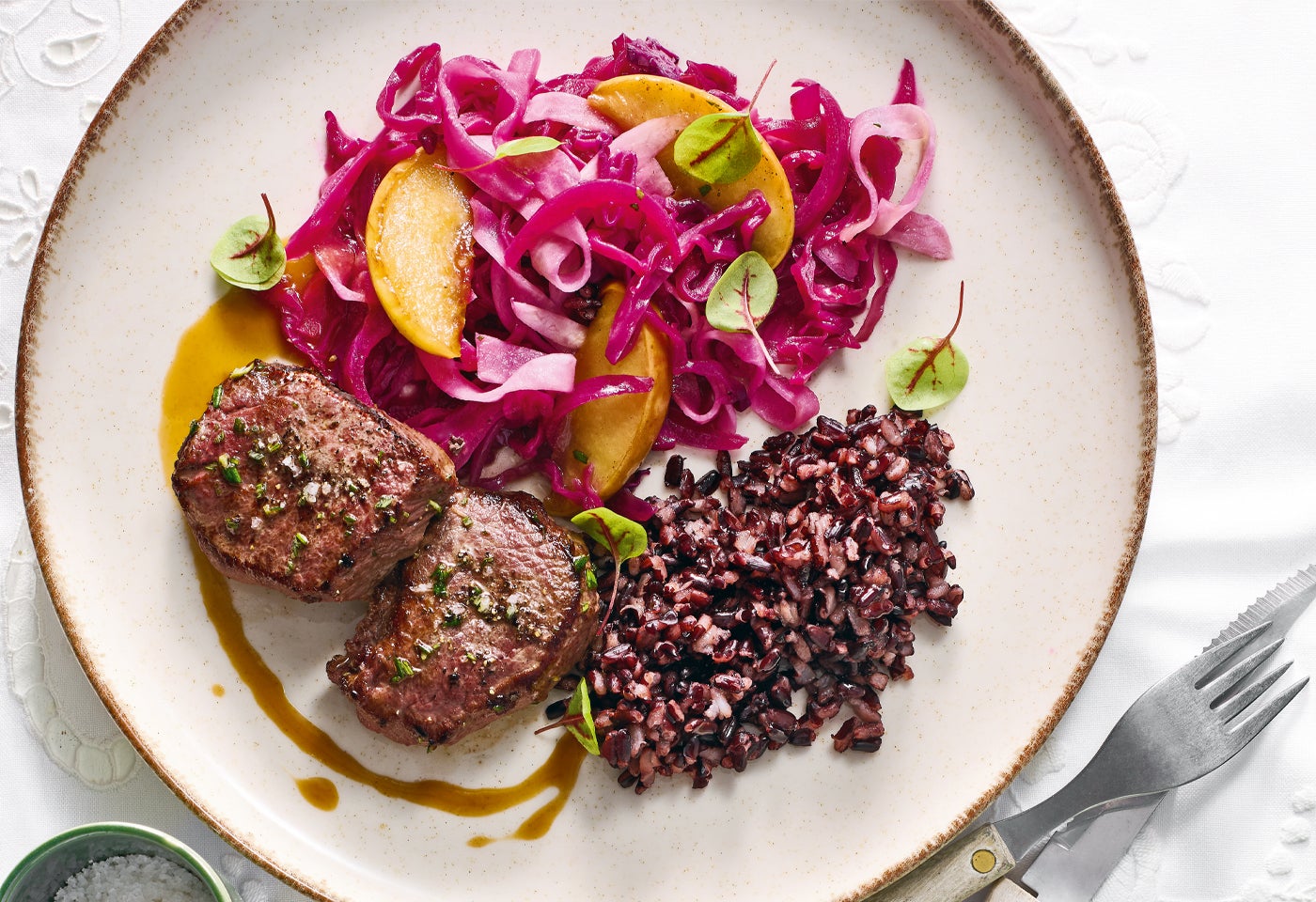 Hirschtaler mit Apfel-Rettich-Rotkraut