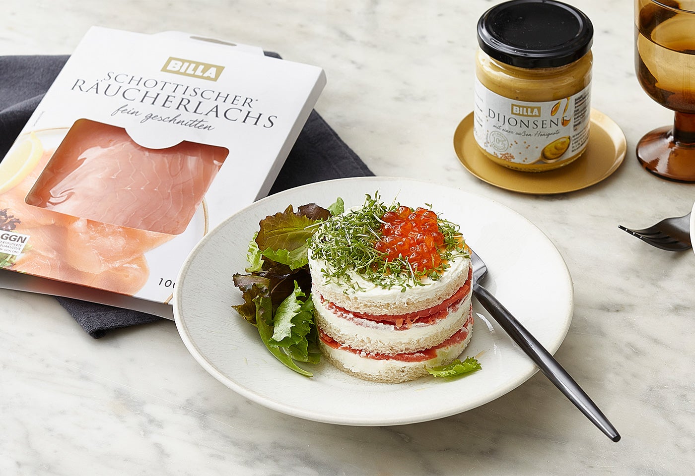 Lachstiramisu mit feinem Blattsalat