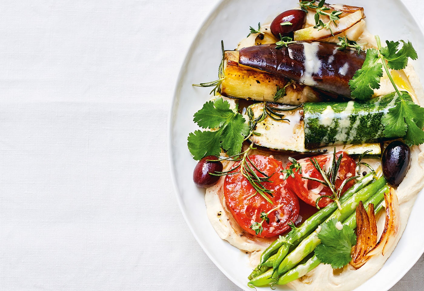 Gebratenes Sommergemüse auf Hummus