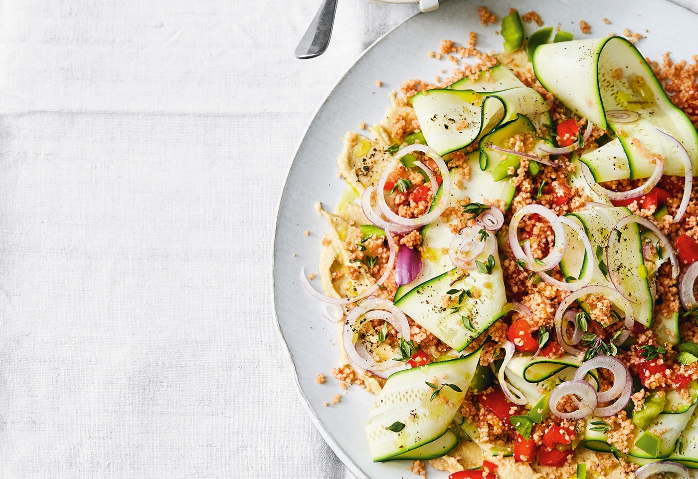 Tomaten-Couscous mit Gemüse und Hummus
