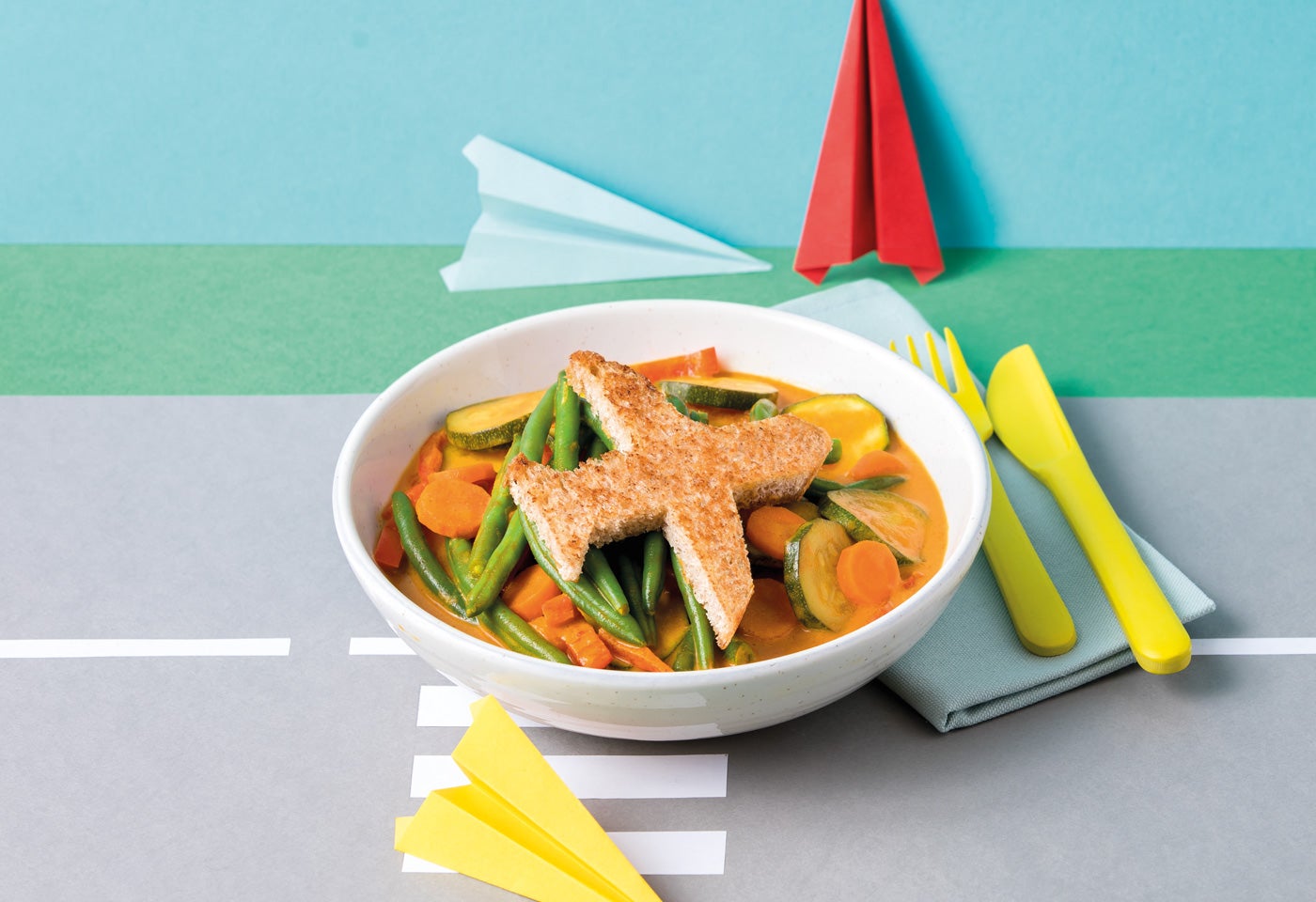 Gemüsecurry mit Flugzeug-Toast