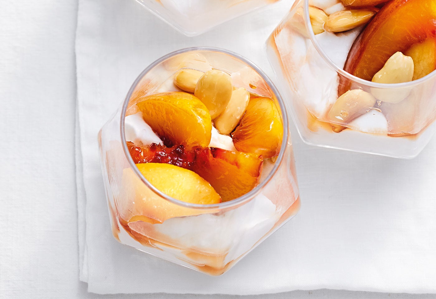 Kokoscreme mit glasierten Nektarinen und Mandeln
