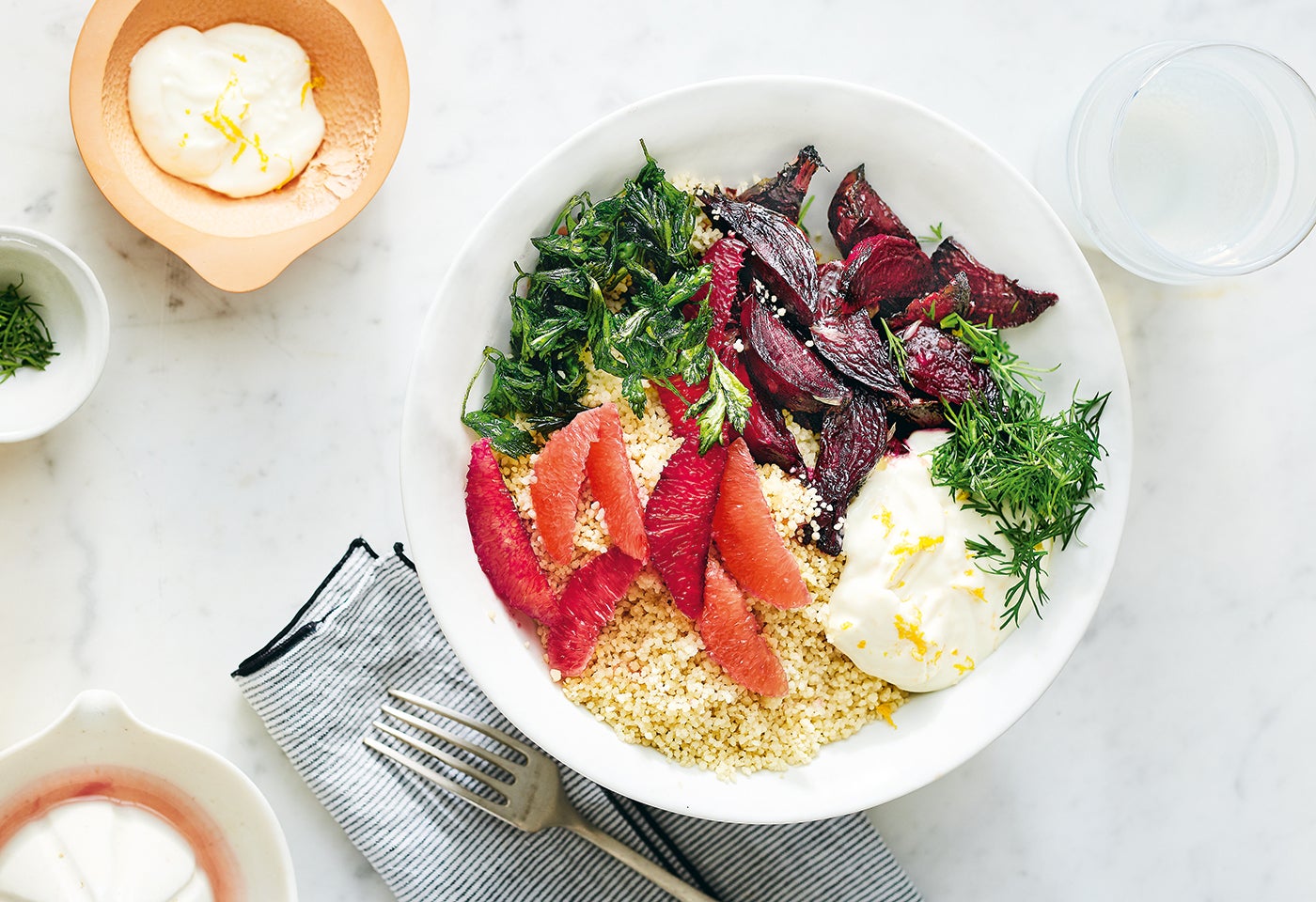 Couscous-Bowl mit Blutorange, Grapefruit, Roten Rüben und Orangenmayonnaise