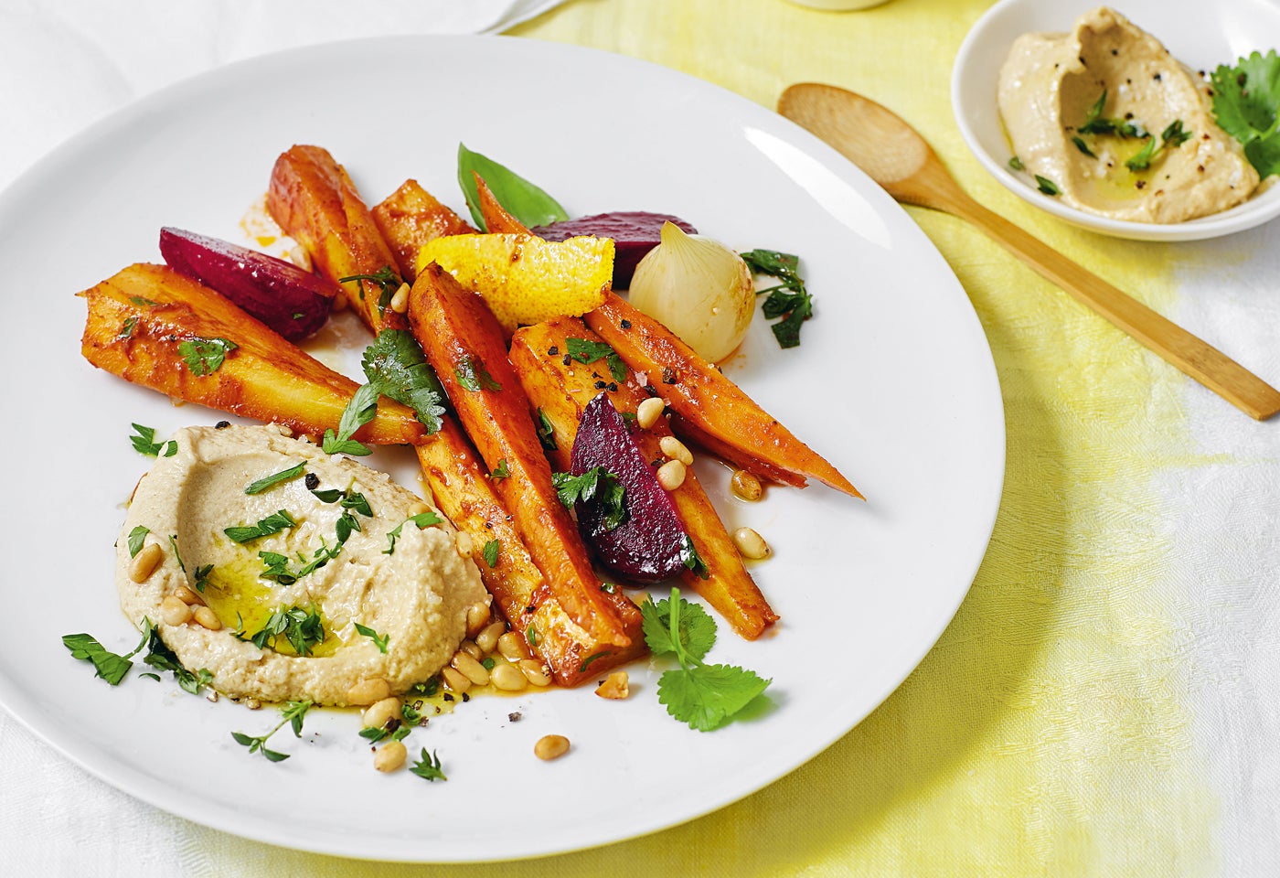 Safran-Wurzelgemüse mit Hummus