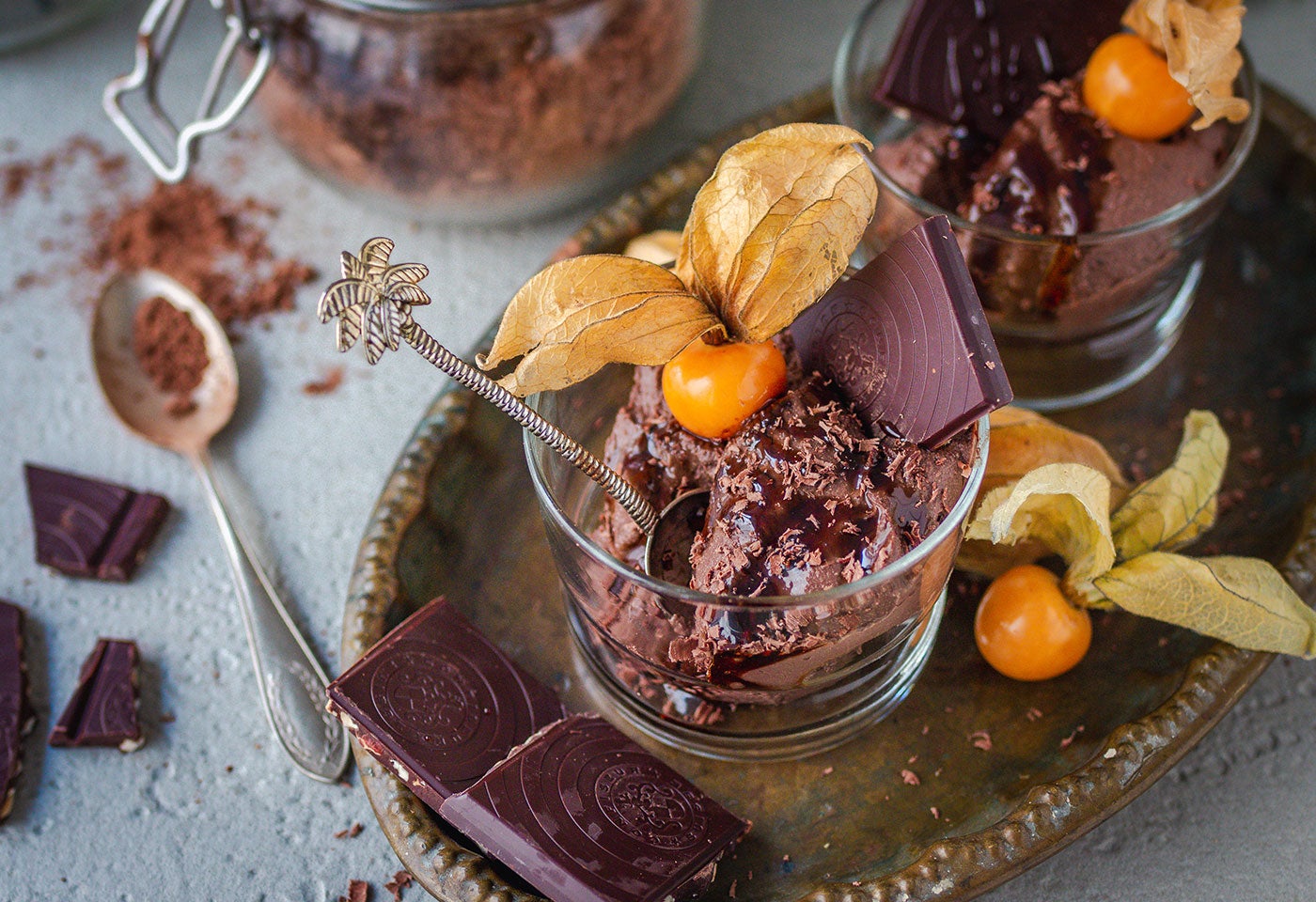 Sojalaibchen mit Erbsen-Minz-Kartoffel-Püree und süß-scharfen Karotten