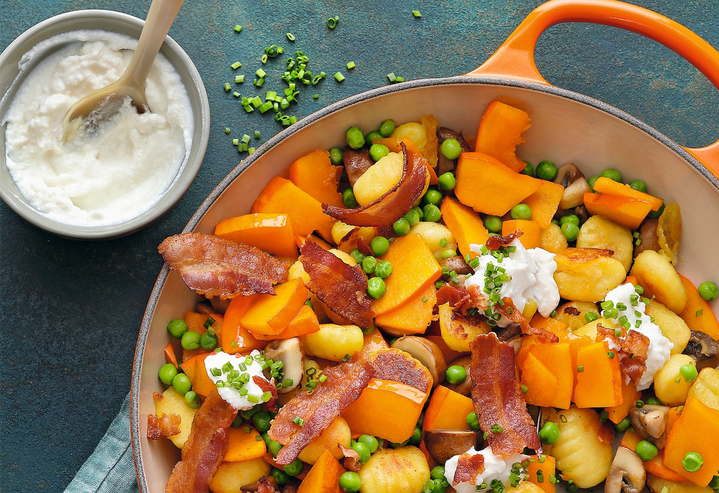 Gnocchi-Kürbis-Gröstl mit Knusperspeck