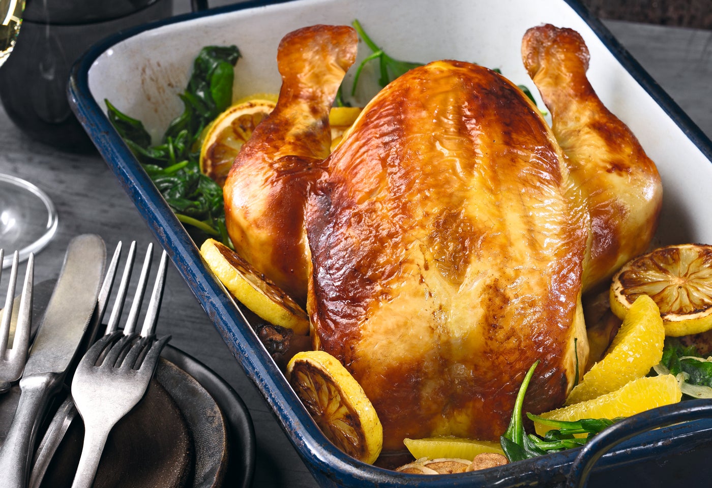 Orientalisch gefülltes Hendl mit Spinat und Orange