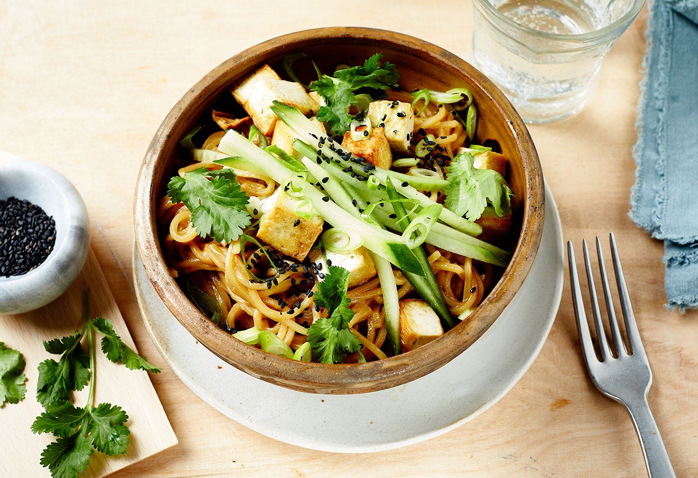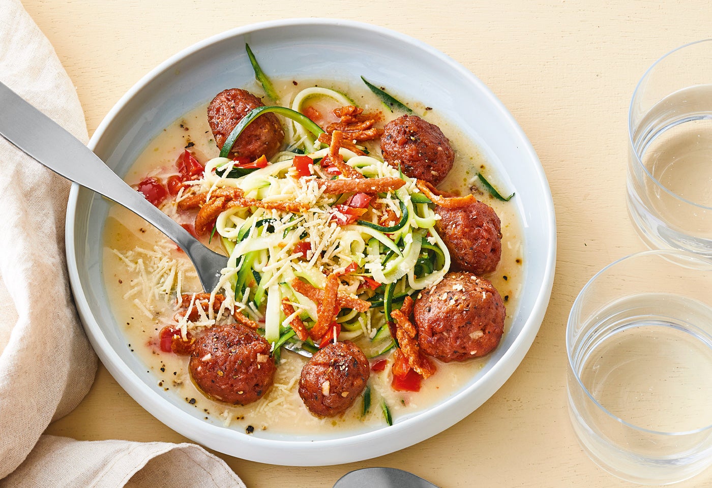 Pflanzliche Faschierte Bällchen mit Zoodles in pikanter Sauce