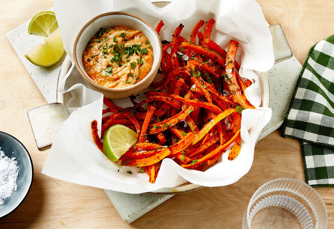 Karotten-Pommes mit scharfem Sriracha-Dip