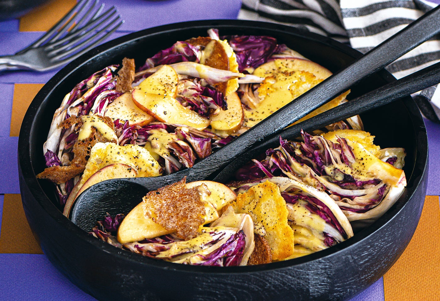 Lauwarmer Apfel-Radicchio-Salat mit knusprigem Bergkäse