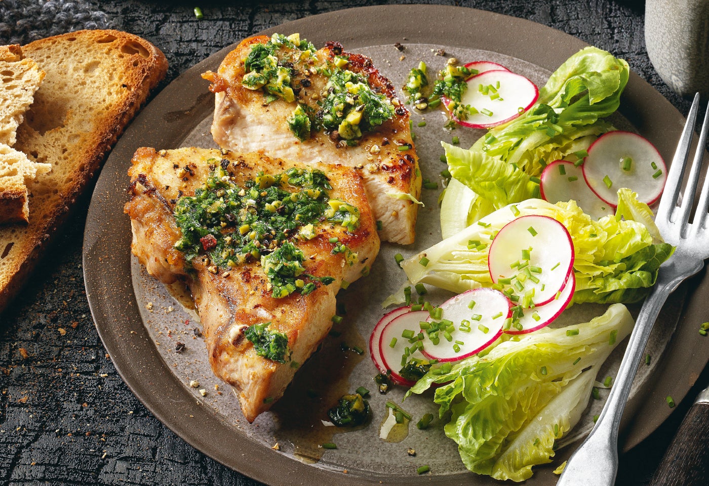 Schweinskotelett mit Kräuter-Oliven-Marinade