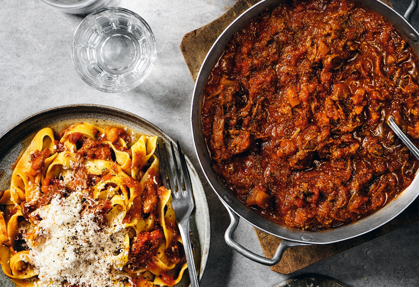 Italienisches Schweinsragout mit Tomaten und Mandeln