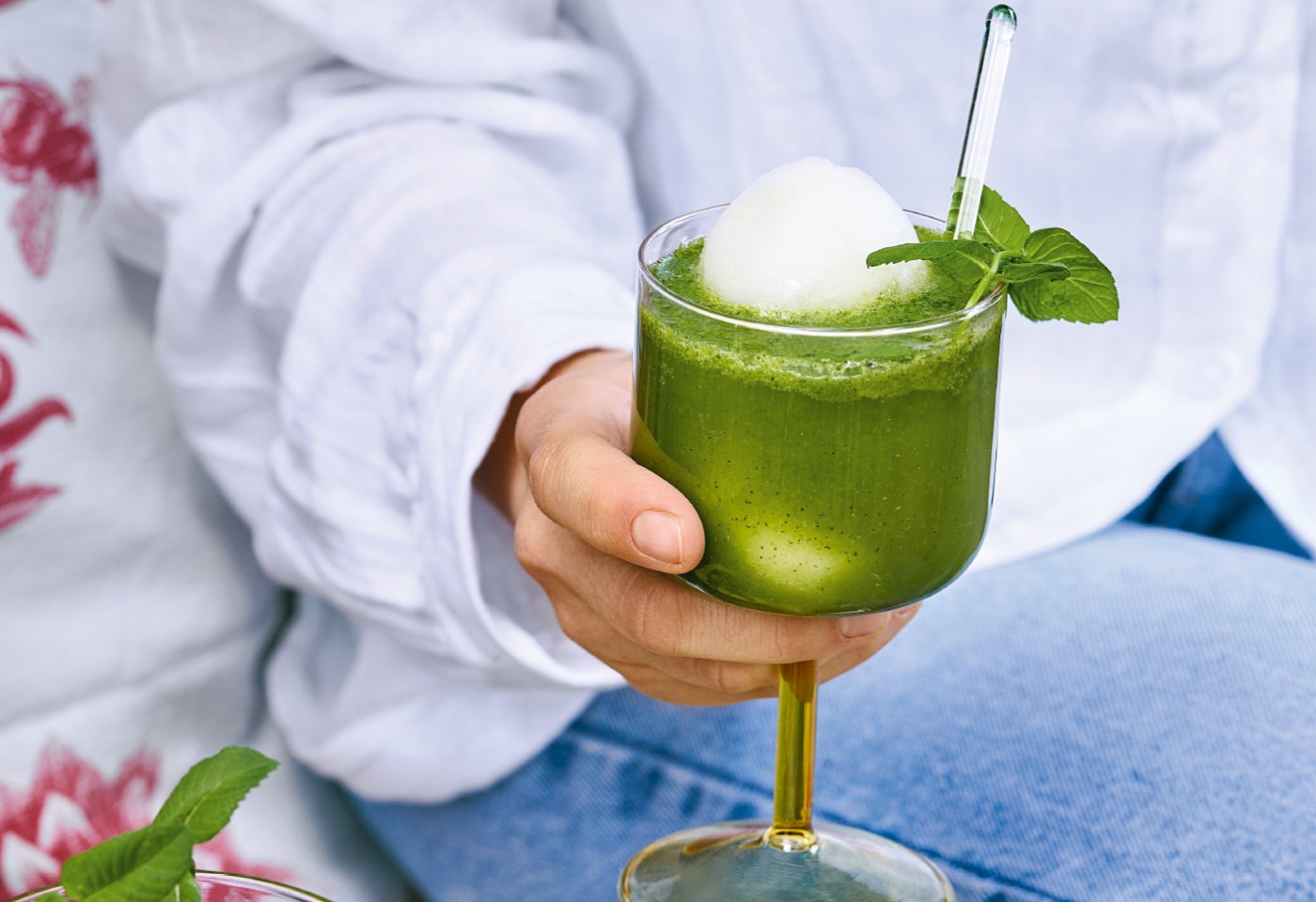 Grüner Sgroppino mit Kiwi, Kräutern und Veltliner