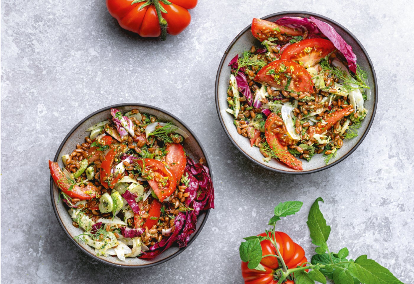 Dinkelsalat mit Tomaten, Fenchel und Pestosauce