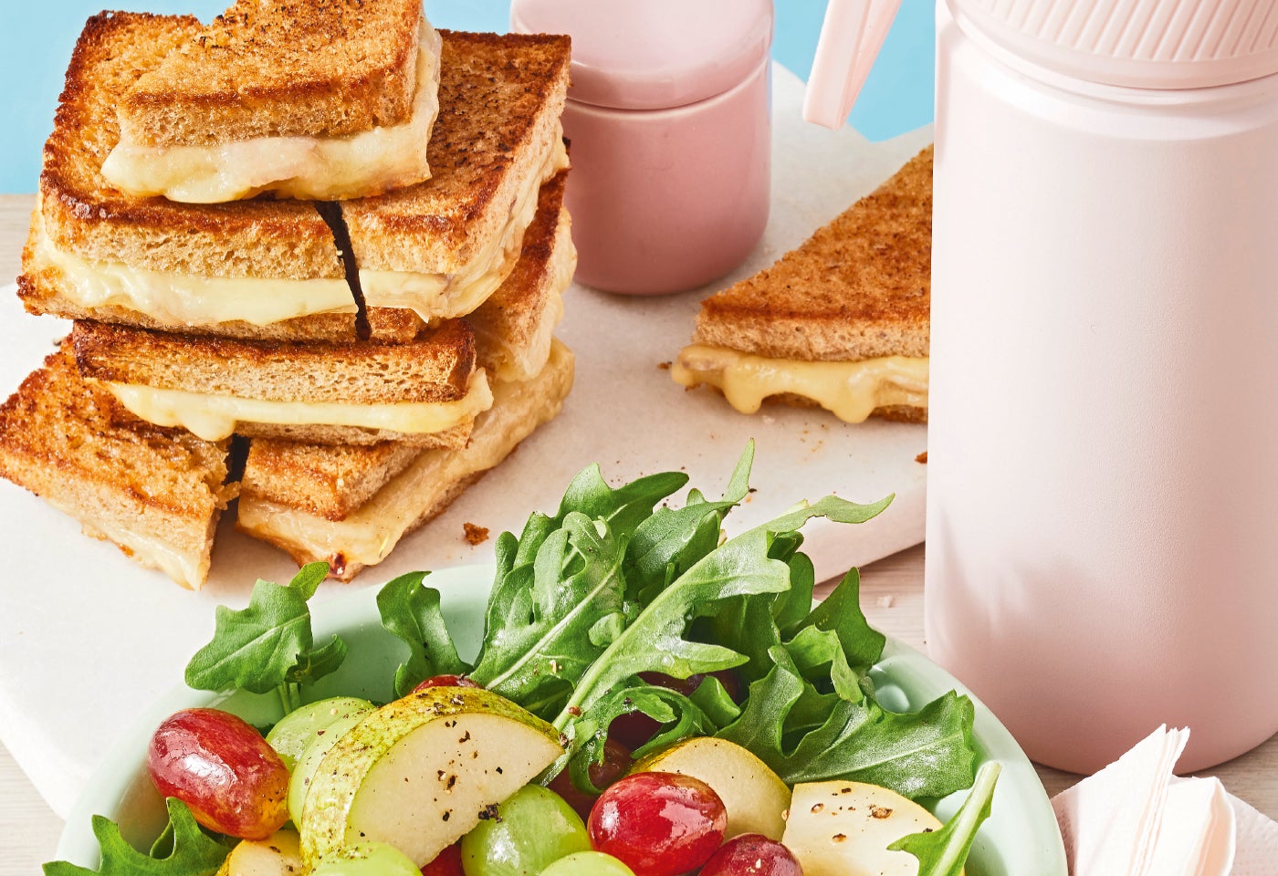 Honey Grilled Cheese Sandwich mit Trauben-Birnen-Salat