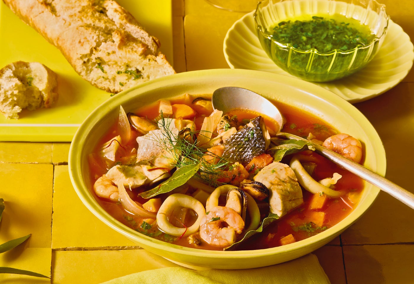 Bouillabaisse auf griechische Art mit Kräutersalsa