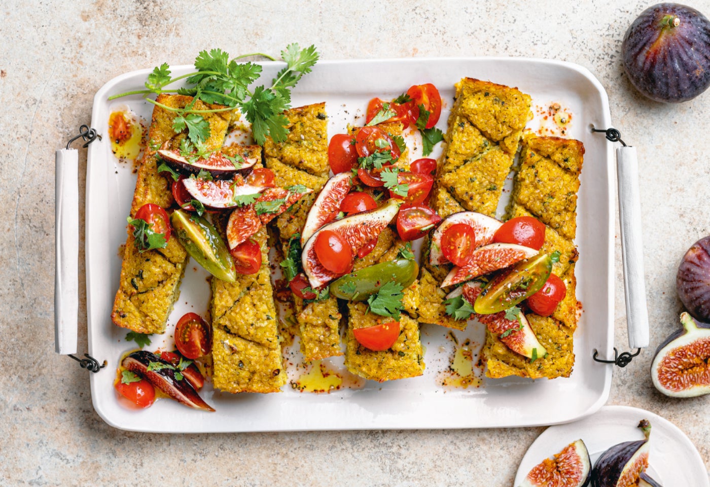 Bulgur-Kuchen mit Tomaten-Feigen-Salat