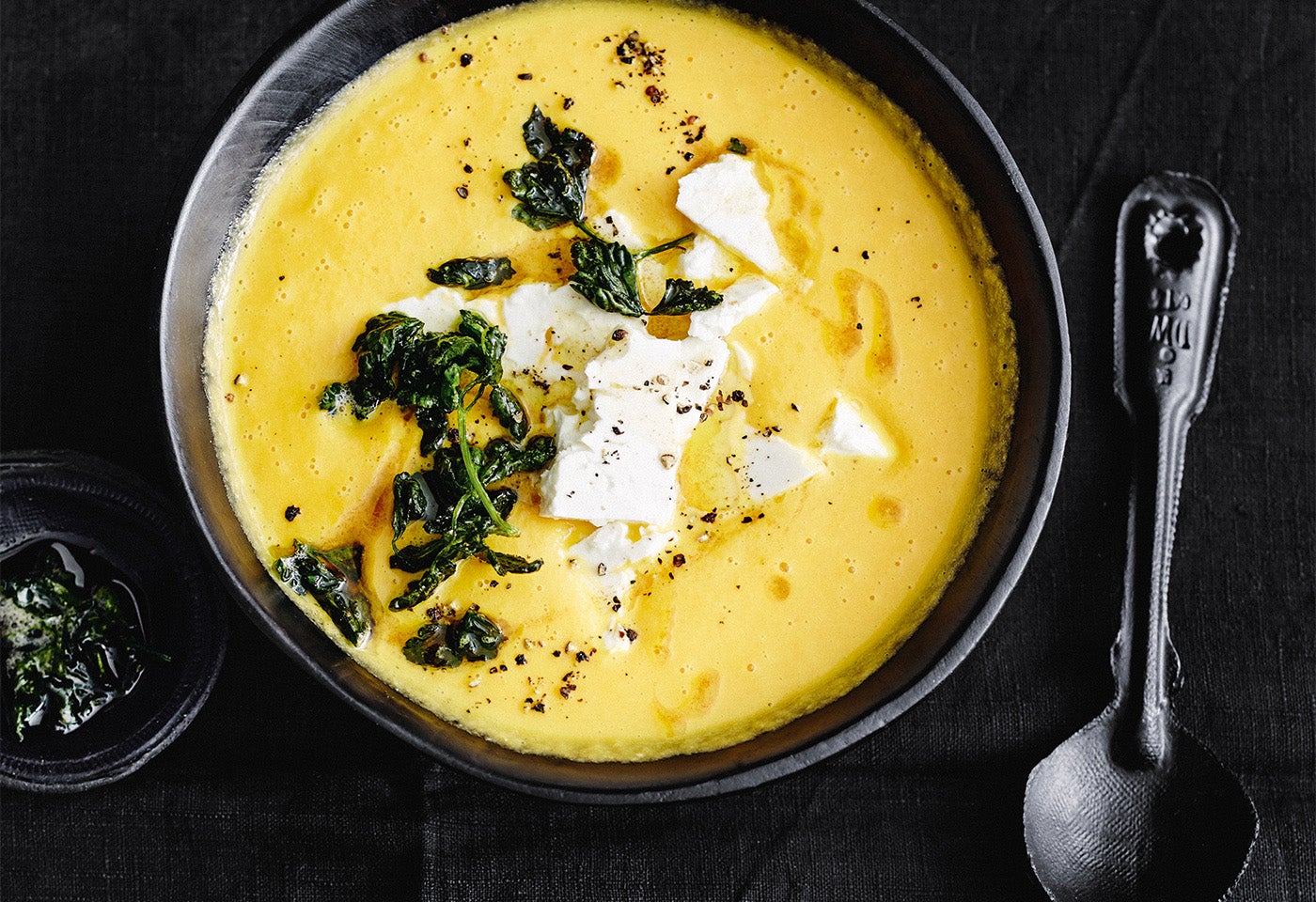 Karotten-Erdäpfel-Suppe mit Feta und Petersilienbutter
