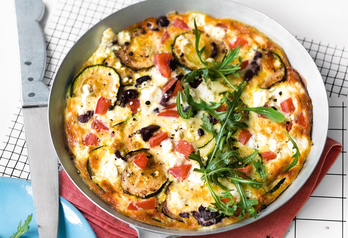 Zucchini-Frittata mit Feta, Oliven und Tomaten