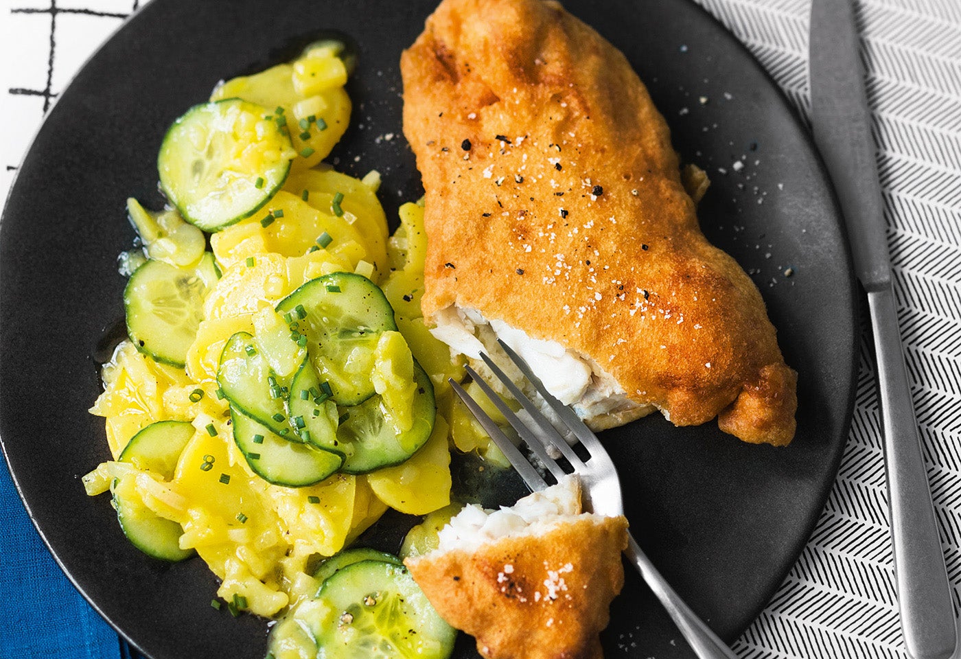 Gebackener Fisch mit Erdäpfel-Gurken-Salat