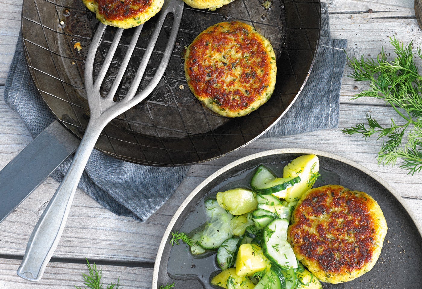Faschierte Fischlaibchen mit Erdäpfel-Gurken-Salat