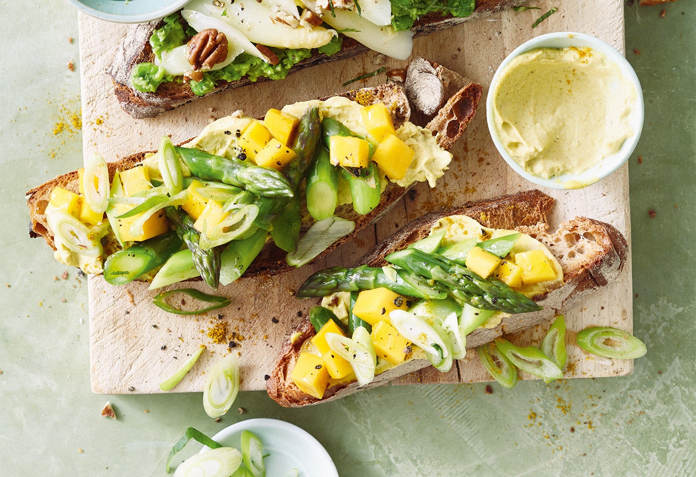 Spargel-Brot mit Currymaiyonnaise und Mango