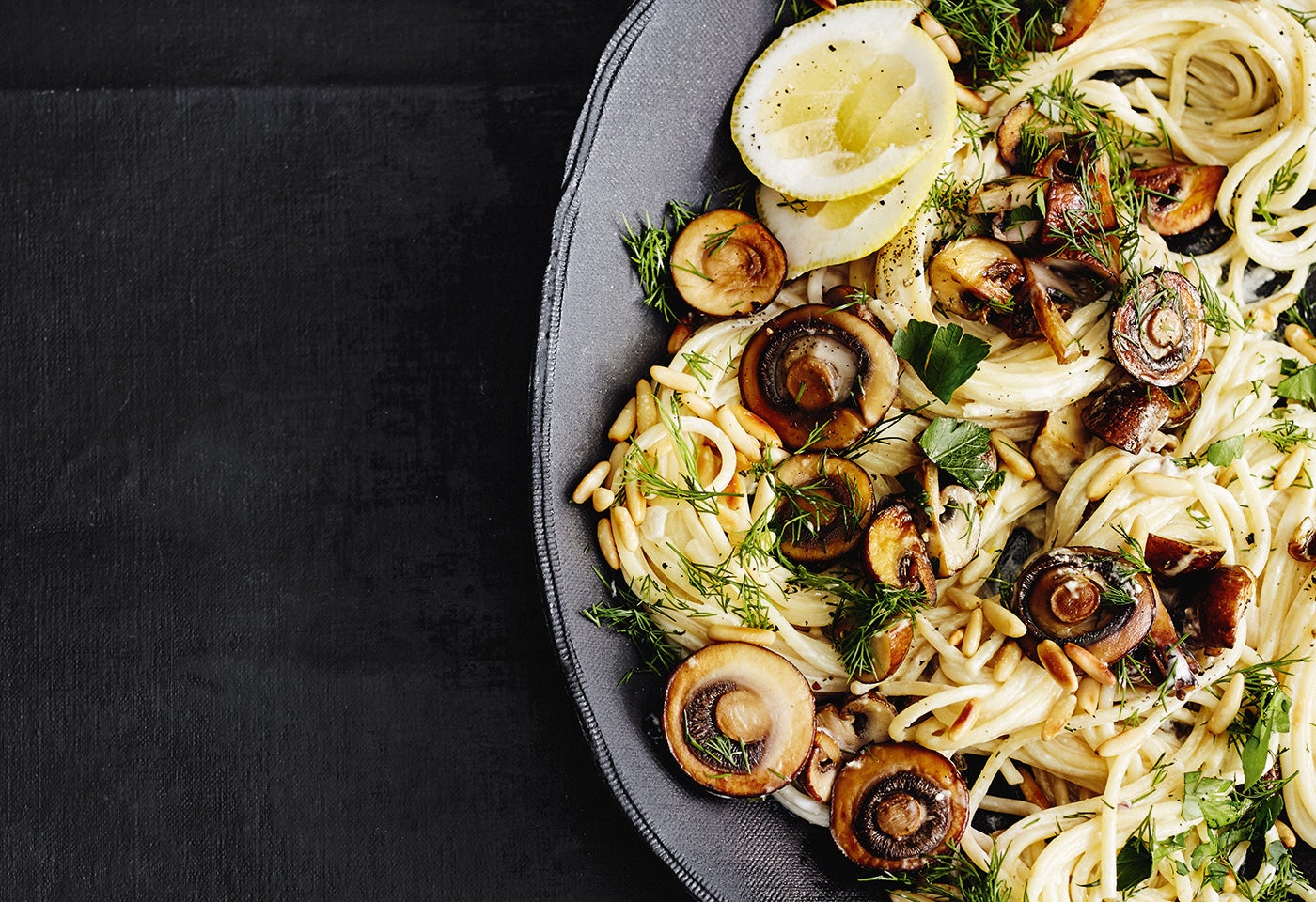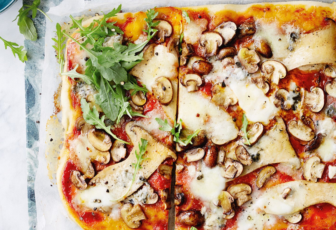 Pilz-Pizza mit Büffelmozzarella und Rucola