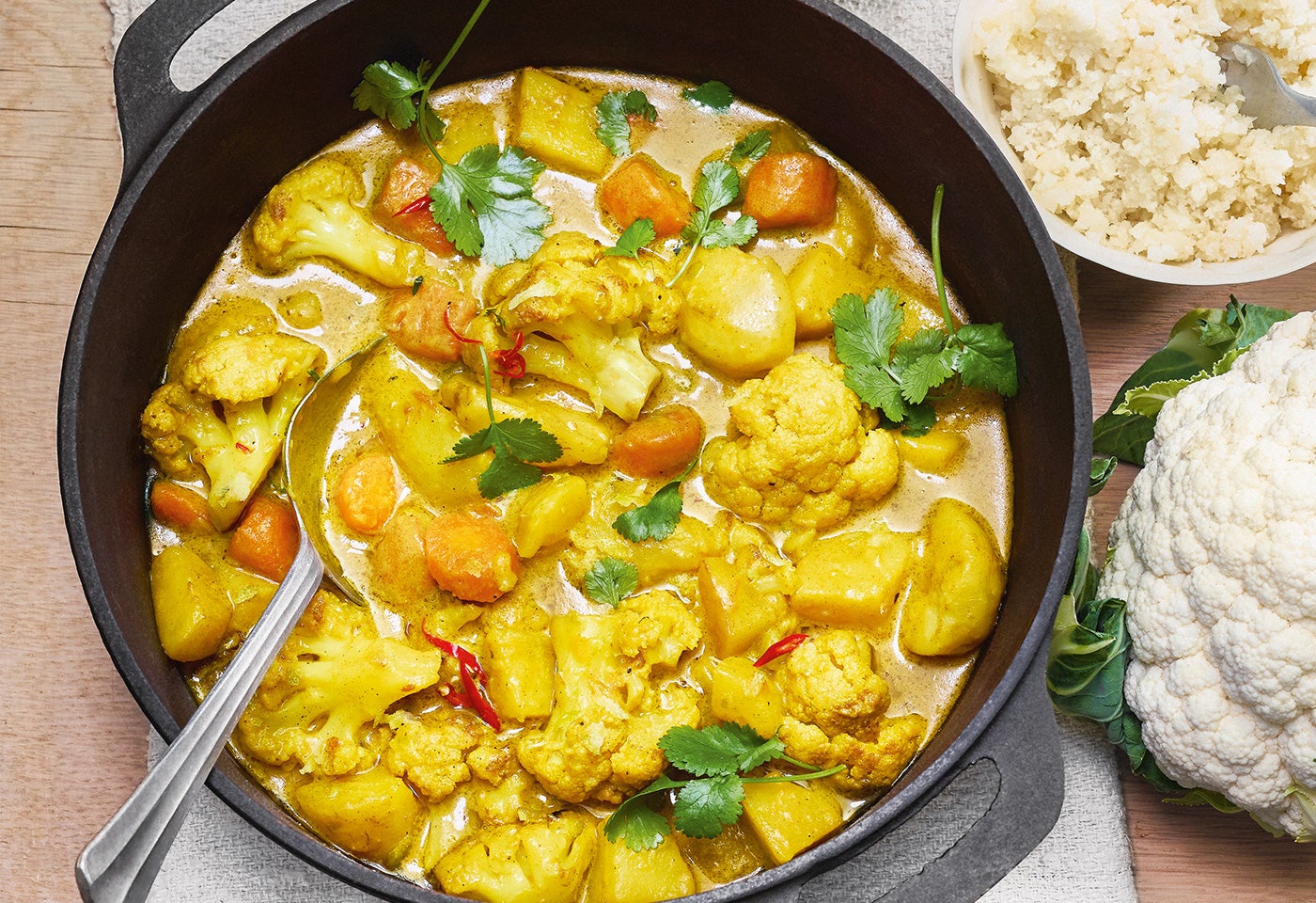 Erdäpfel-Sellerie-Curry mit Karfiolreis