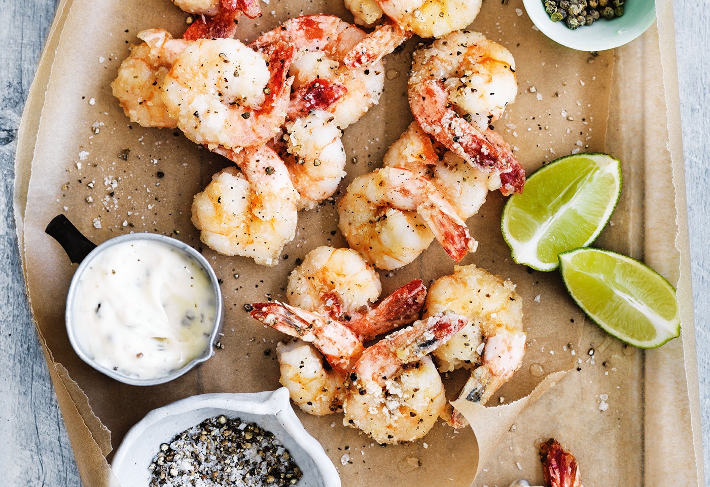 Salz-und-Pfeffer-Garnelen mit Limettenmayonnaise
