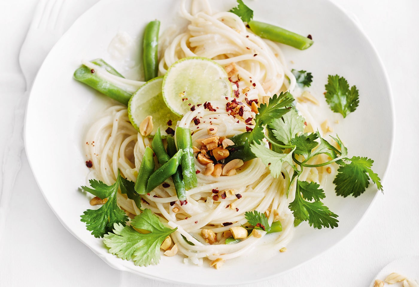 Spaghetti mit Fisolen und Limetten-Kokos-Sauce