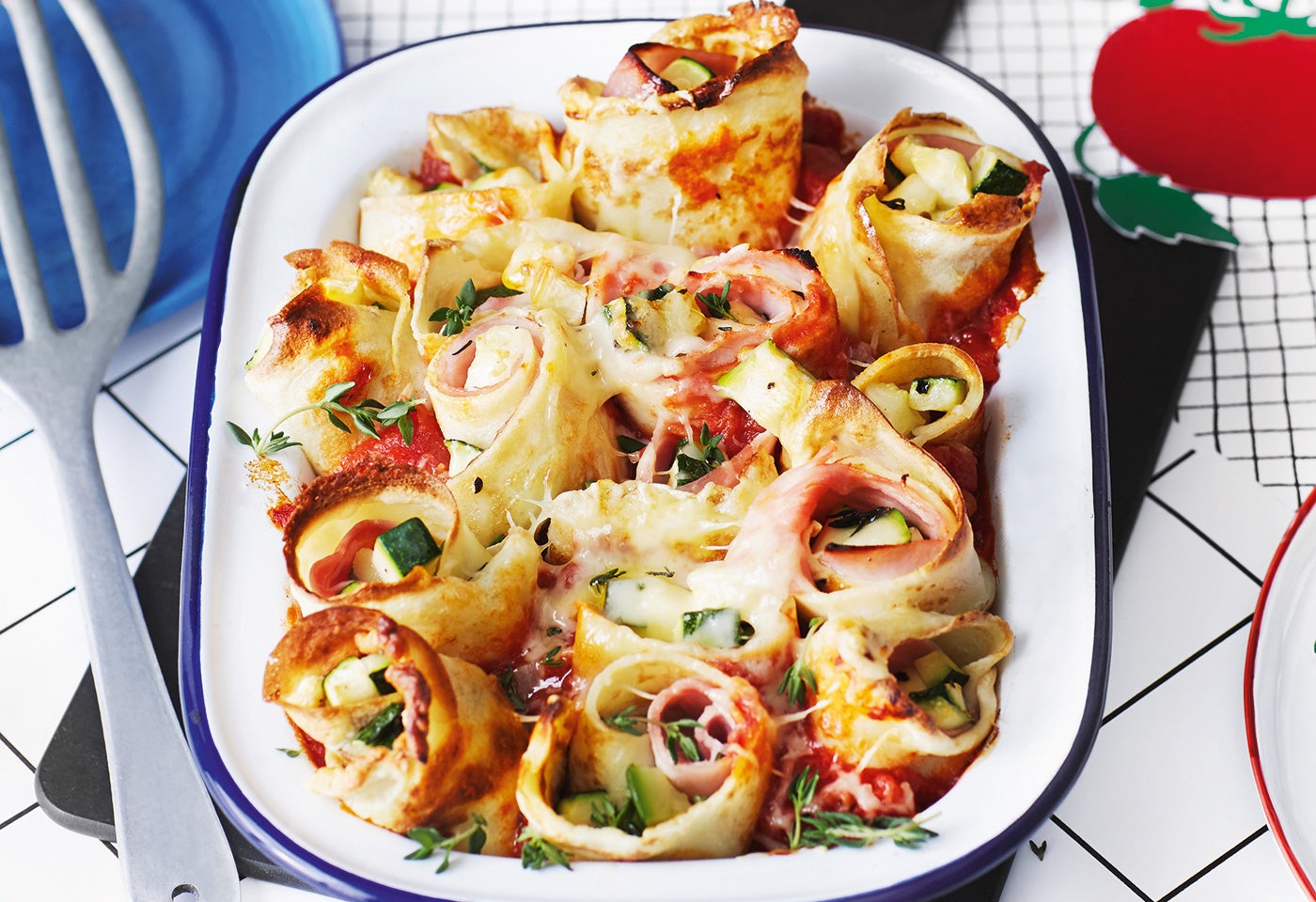 Palatschinken-Röllchen mit Zucchini und Schinken