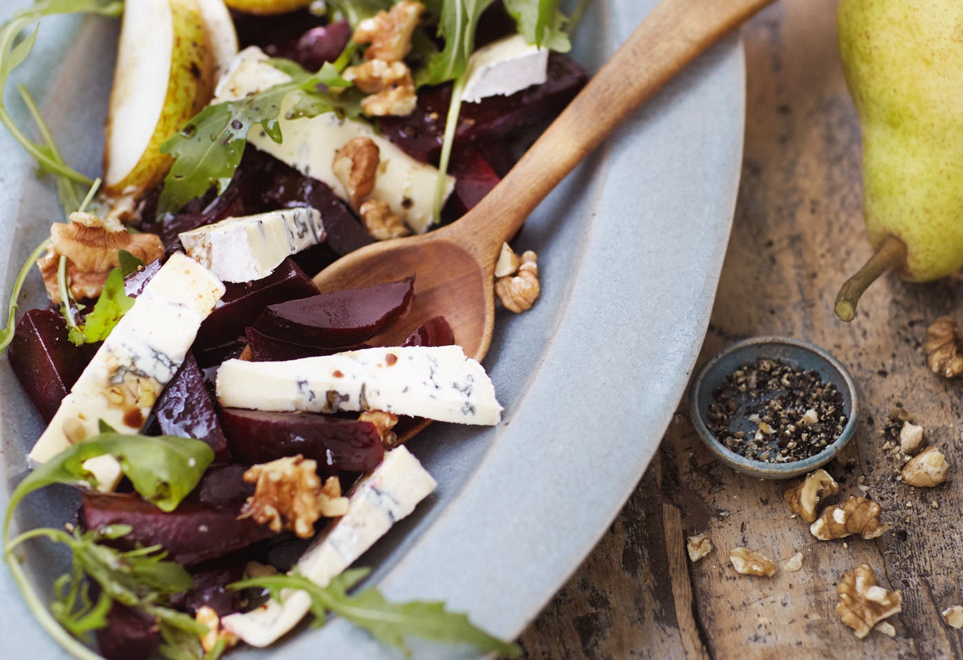 Birnen-Käse-Nuss-Salat mit roten Rüben