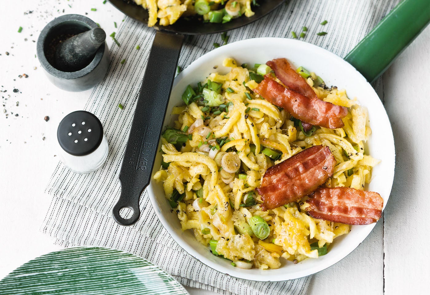 Spinat-Kichererbsen-Pfanne mit Eiern