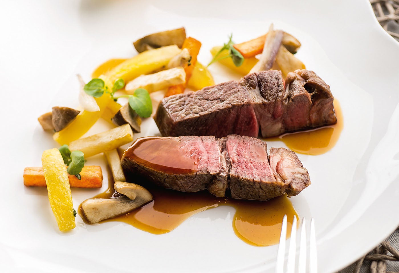 Gans mit Zwiebel-Orangen-Füllung, Maroni-Rotkraut und Serviettenknödel
