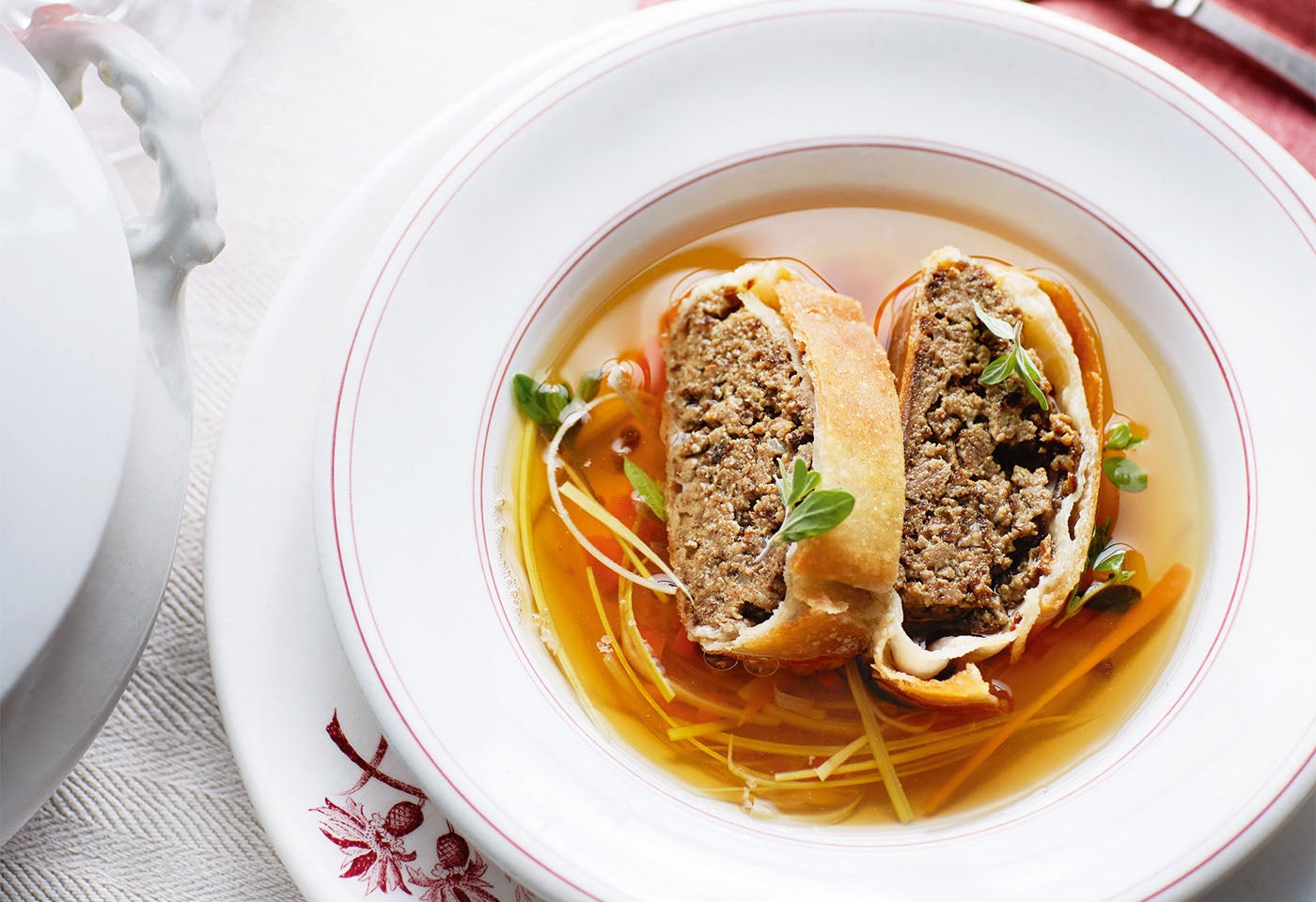 Faschierte Bällchen mit Lauch-Obers-Sauce