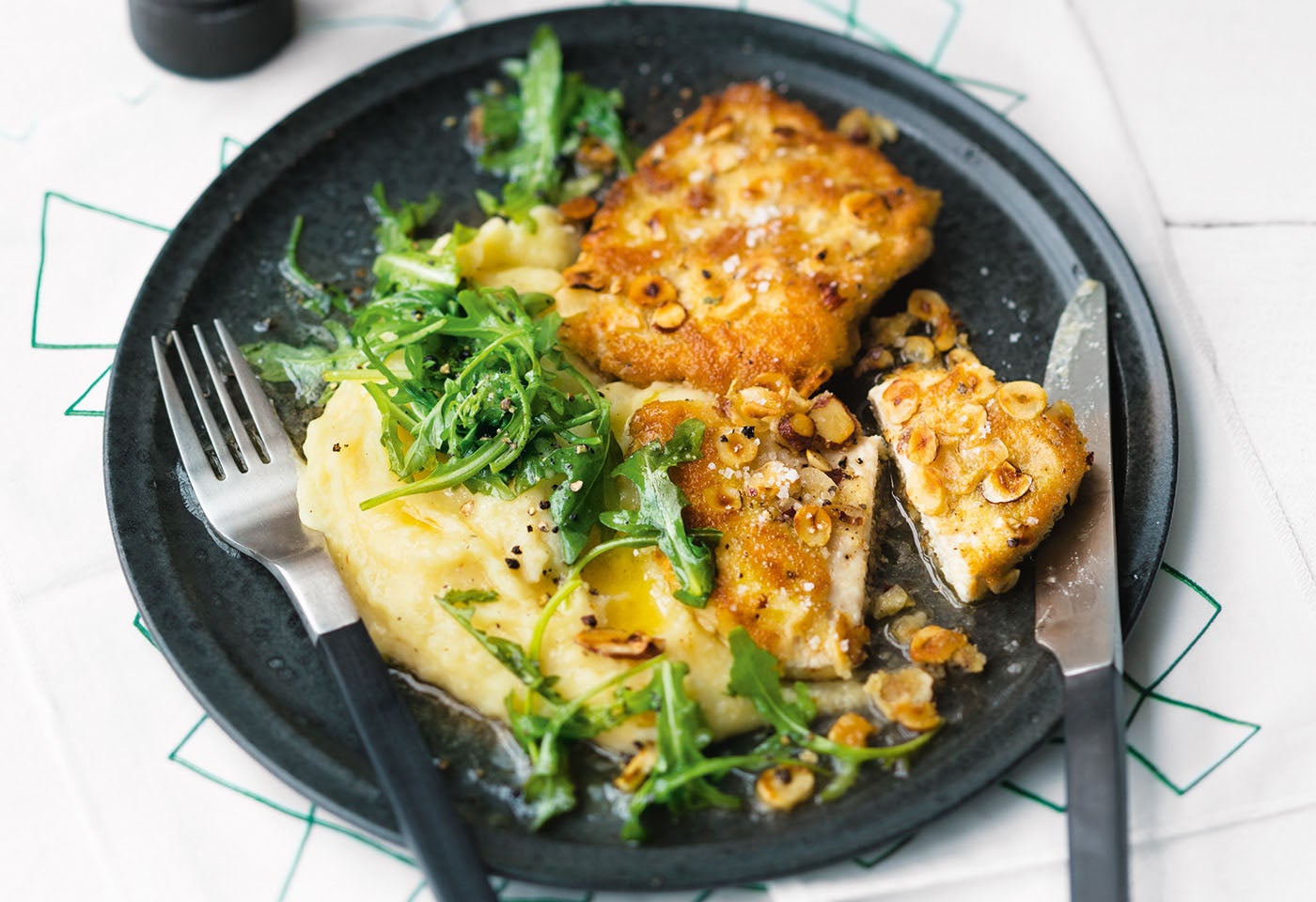 Putenschnitzel mit Selleriepüree und Rucolabutter