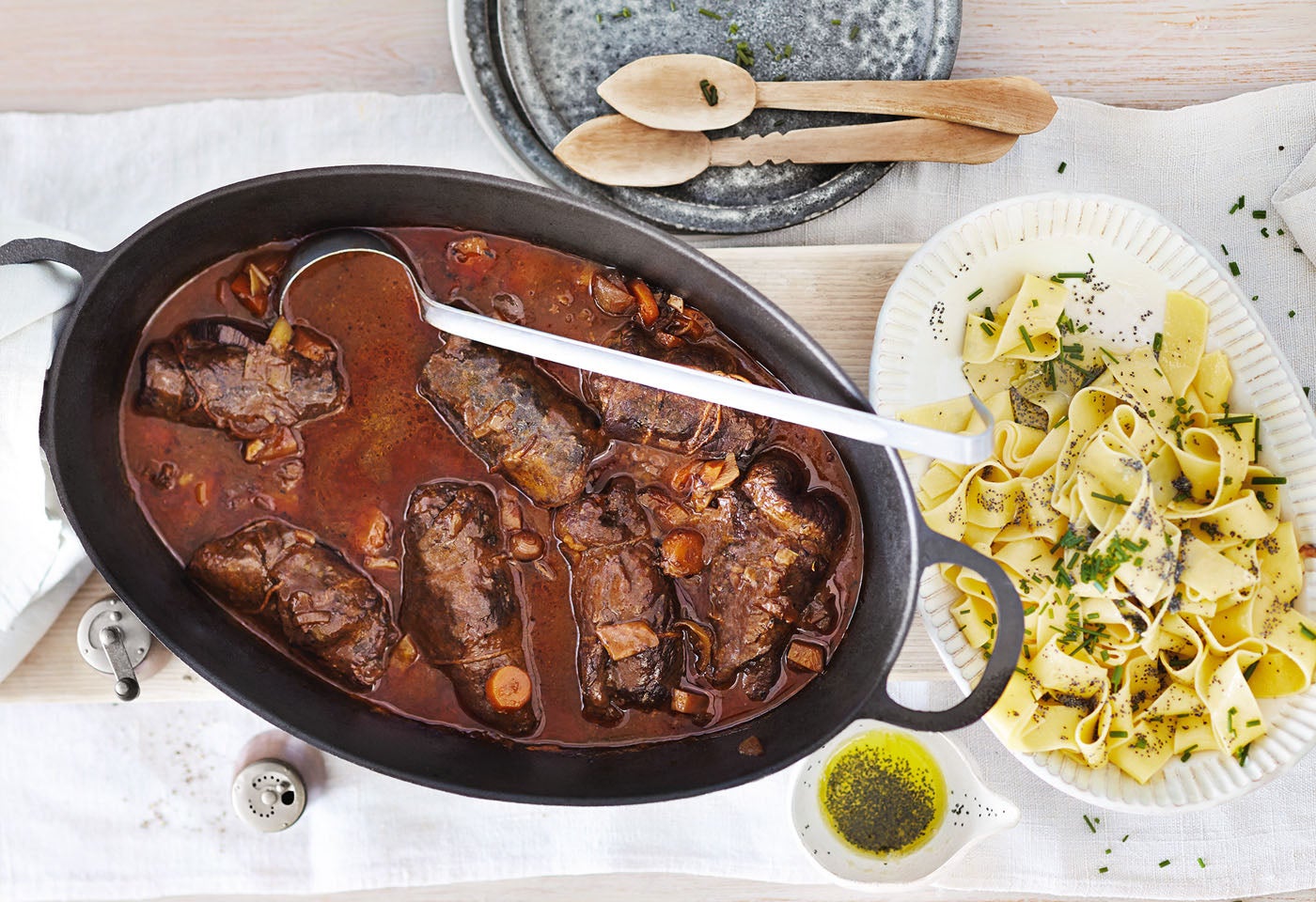 Rindsrouladen mit Bandnudeln in Mohnbutter