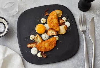 Salzsellerie mit confiertem Eigelb und Crème fraîche